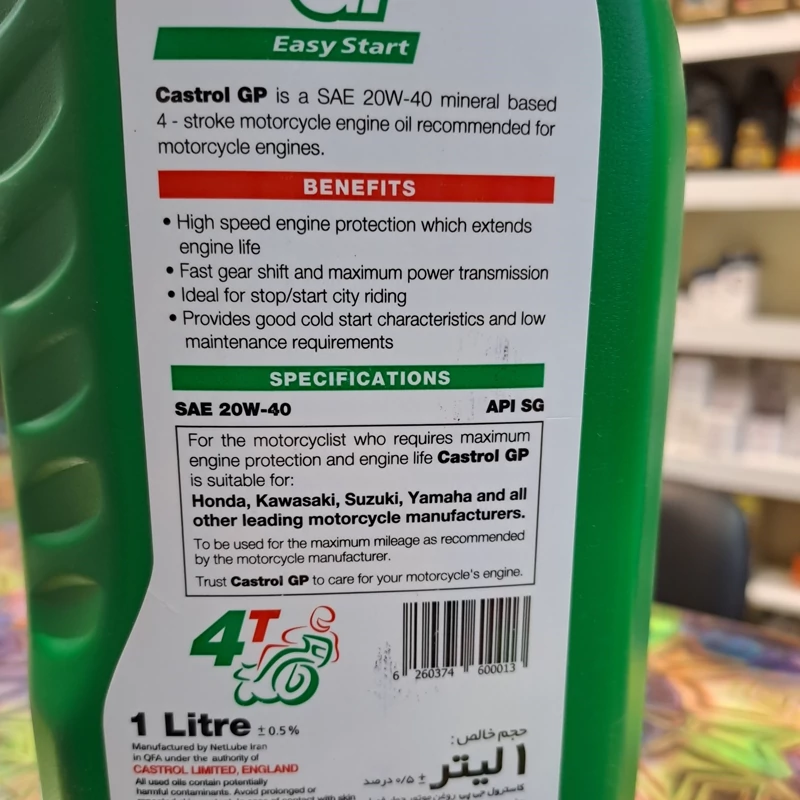 روغن موتورسیکلت کاسترول CASTROL گرید 20W40 یک لیتری GP