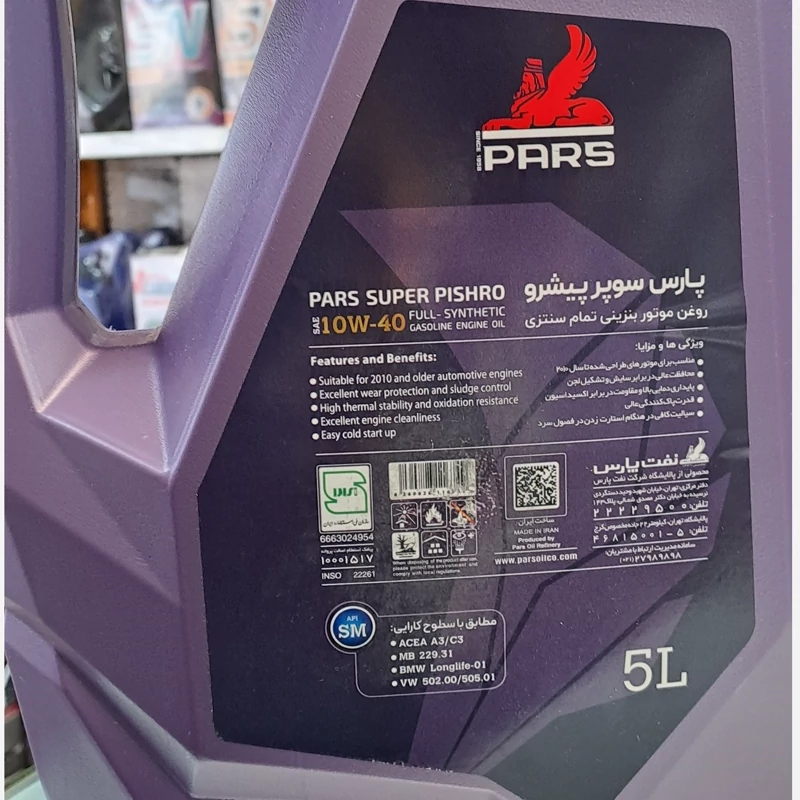روغن موتور پارس پیشرو 5 لیتری 10w40 گرید SM