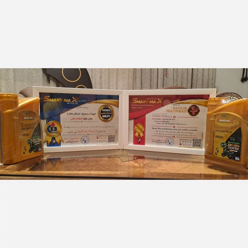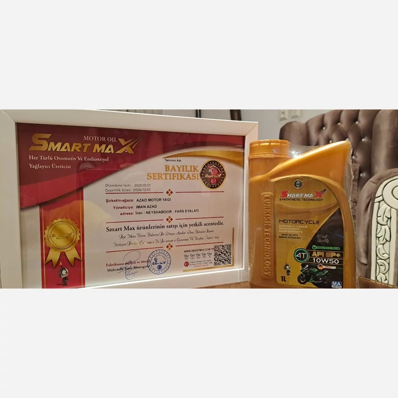 روغن موتور اسمارت مکس 1 لیتری 10w50 گرید SP+ Jaso Ma2 اسمارت مکس Smart Max فول سنتتیک کیفیت 100٪ تضمینی API SP+ 10W-50 رنگ:شرابی موتورسیکلت روغن موتور هایلوکس اسمارت مکس اولترا EN با فناوری و اصلاحات ویژه و روغن پایه مصنوعی بسیار با کیفیت فرموله شده است و به طور موثری از تشکیل لجن و کثیفی در قطعات موتور جلوگیری کرده و با قدرتی بسیار بالاتر از موتورهای معمولی از موتور محافظت میکند. 1 لیتری گرید SP+ JASO MA2 کاهش صدای موتور محافظت از قطعات جلوگیری از تشکیل رسوب استارت سریع کارکرد بالا