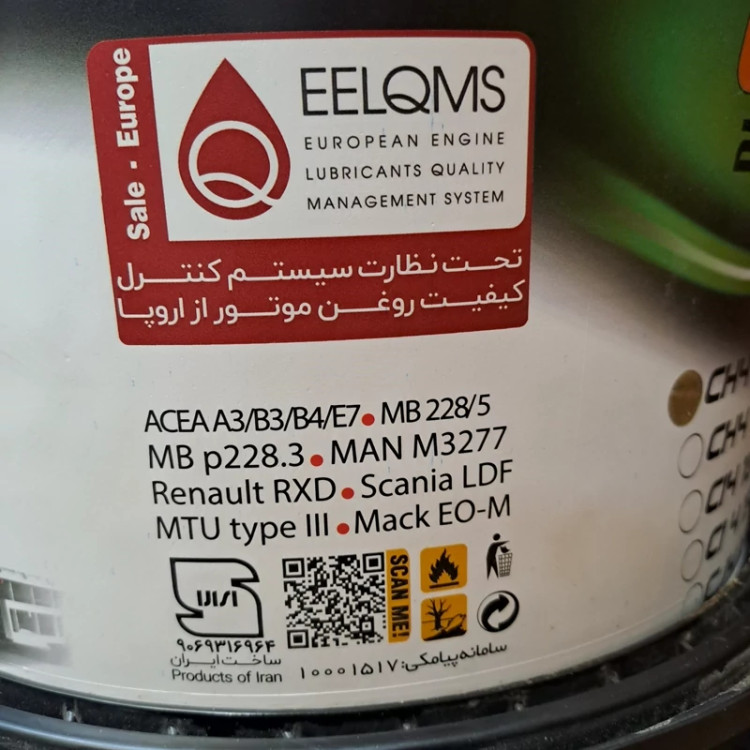 روغن موتور دیزلی بسیار مرغوب تولید شده تحت نظارت سیستم کنترل کیفیت روغن موتور اروپا EELQMS مورد تایید بسیاری از خودروسازان جهان: Scania LDF ، Mack-Eo-M ، m3277-MAN ، Renault-RXD، MB 228/5 ، MTU TYPE III ، ACEA A3/B3/B4/E7 مخصوص کار در شرایط کاری دشوار دارای عملکرد عالی در دمای بالای کار موتور محافظ موتور در دماهای مختلف افزایش دهنده عمر موتور دارای روانکاری عالی و جلوگیری کننده از سایش قطعات موتور پایدار در حرارت بالا مقاوم در برابر اکسیداسیون با خاصیت ضد زنگ و ضد خوردگی بهترین مانع آلودگی موتور
