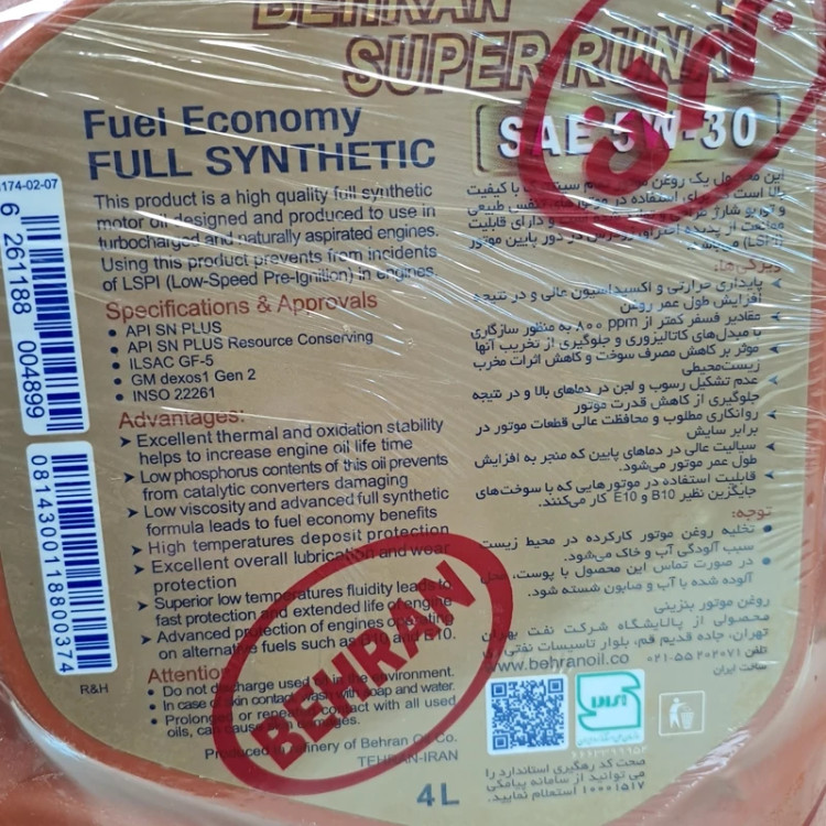شرکت نفت بهران، شرکت نفتی ایرانی است، که در بخش پایین دستی صنعت نفت فعالیت می کند. این شرکت، در سال 1341 با سرمایه اولیه 225 میلیون ریال و با مشارکت شرکت نفتی آمریکایی اکسان تأسیس شد. تا پیش از انقلاب 1357 شرکت بهران محصولات خود را، با نام تجاری اسو و تحت نظارت شرکت اکسان تولید و عرضه می نمود. این شرکت، اولین پالایشگاه خود را در سال 1347 راه اندازی کرد. حوزه اصلی فعالیت شرکت نفت بهران در زمینه پالایش و تولید روغن موتور، روغن های صنعتی، روانکارها، ضدیخ، گریس و سایر فراورده های نفتی می باشد. بهران سوپر رانا 5W-30، روغن موتور بنزینی تمام سینتتیک بسیار مرغوب است که بالاترین سطح کیفیت جهانی این دسته از روغن ها را دارد و برای روانکاری خودروهای با طراحی موتور سال 2011 و بالاتر و همچنین خودروهایی که با سوخت الکلی (محتوی اتانول تا E85) کار می کنند، پیشنهاد می شود. این محصول با استفاده از روغن پایه سینتتیک و مواد افزودنی بسیارمرغوب، تولید می شود. مزیت ها مقاومت عالی در برابر اکسیداسیون محافظت عالی در برابر تشکیل لجن و رسوب سازگاری بیشتر با الاستومرها و آب بندها محافظت از سیستم توربو شارژ سازگاری با سیستم های کنترل نشر آلاینده ها موثر بر کاهش مصرف سوخت توصیه هایی برای استفاده: قبل از استفاده از روغن موتور، می بایست دفترچه راهنما خودرو خود و قسمت مربوط به روغن موتور را چک کنید. دقت داشته باشید تعویض روغن موتور باید بر طبق روغن موتور پیشنهادی ذکر شده در دفترچه راهنما خودرو باشد. این روغن موتور را نباید در دمای بالاتر از 60 درجه سانتی گراد نگه دارید و از تابش مستقیم نور خورشید به این روغن موتور جلوگیری کنید. همچنین بهتر است این روغن موتور را در جایی نگه داری کنید که نوسانات دمایی کمی داشته باشد.