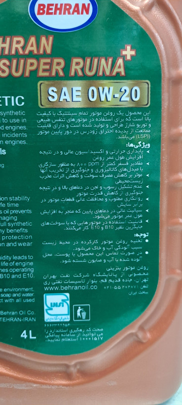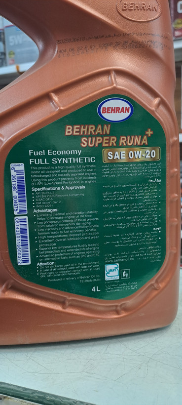 روغن موتور بهران سوپر رانا پلاس ۰w20 چهارلیتری SN+