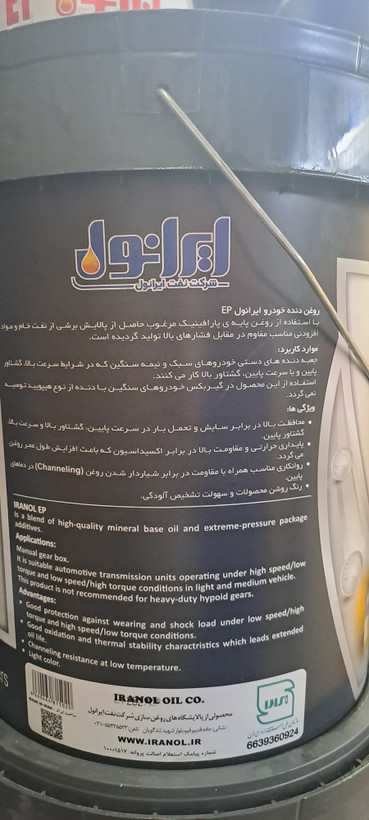 روغن دنده ایرانول ۸۵w۹۰ بیست لیتری EP