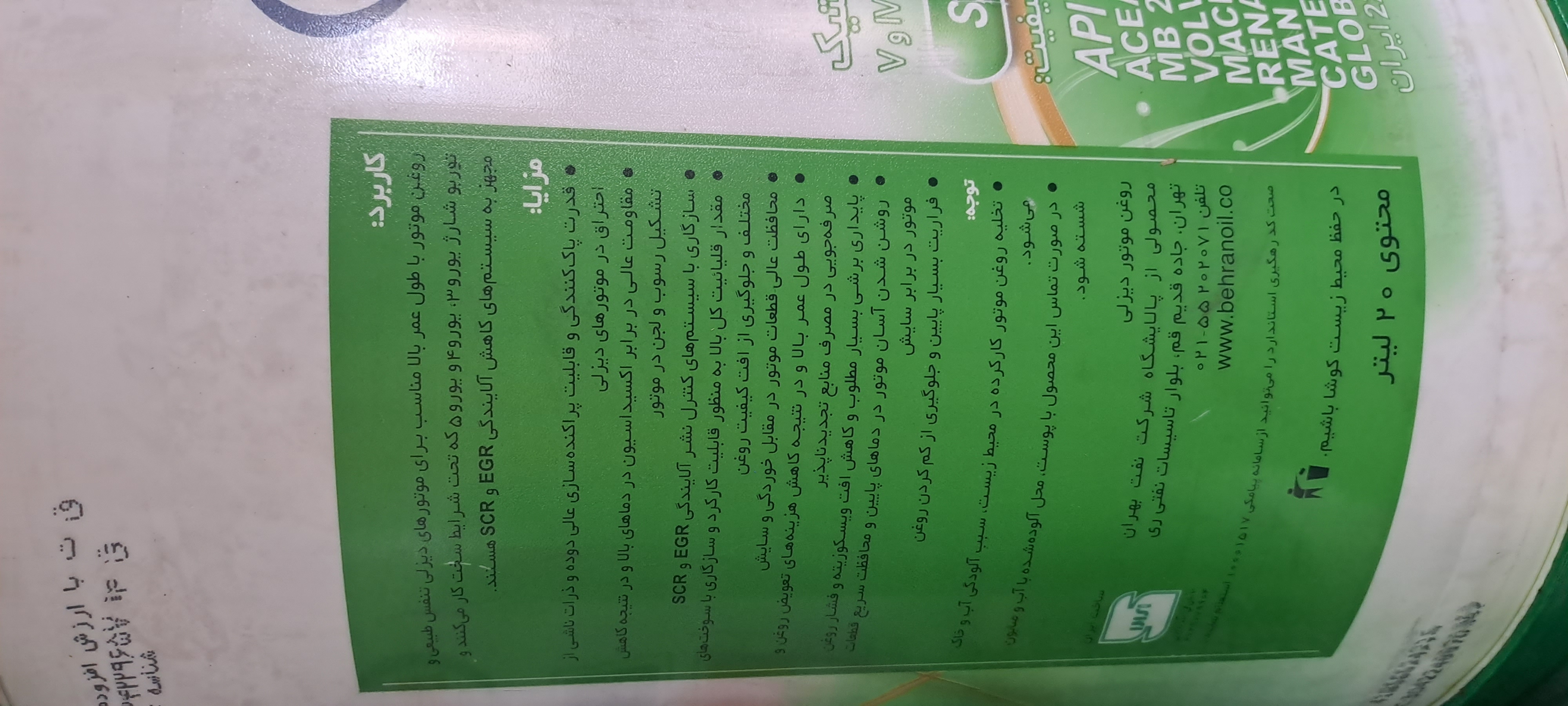 روغن موتور دیزلی بهران توربو E5 گرید 10W40 یکی از محصولات برتر و پیشرفتهی شرکت بهران است که بهطور ویژه برای موتورهای دیزلی طراحی و تولید شده است. این روغن با ترکیبات پیشرفته و فناوریهای نوین، عملکرد بهینهای را برای موتورهای دیزلی در شرایط مختلف کاری فراهم میکند. در ادامه به برخی از مزایای کلیدی این روغن موتور دیزلی اشاره میکنیم: