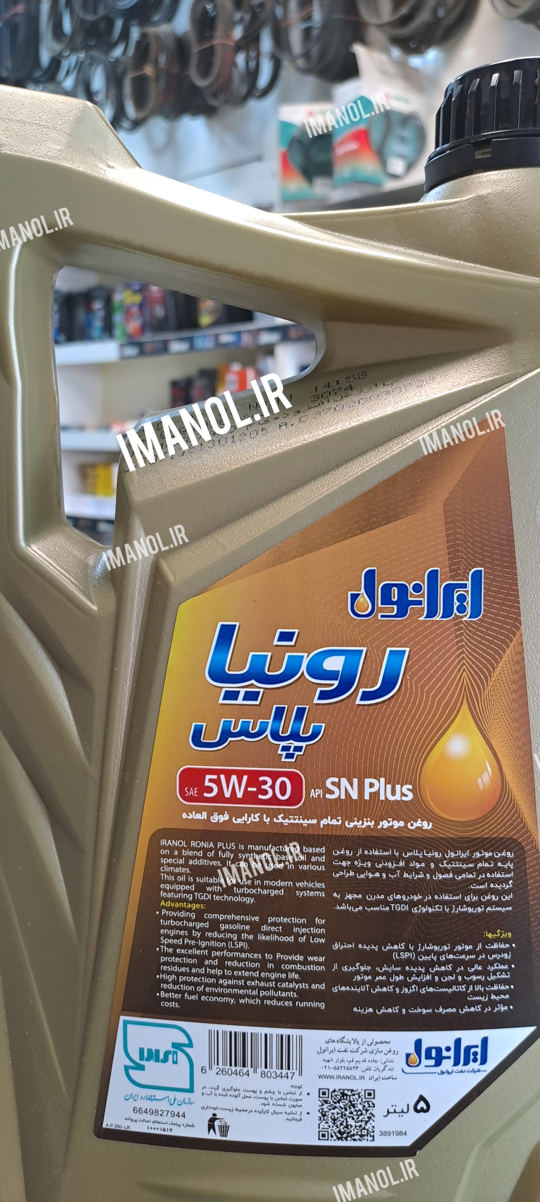 روغن موتور ایرانول رونیا پلاس ۵w۳۰ پنج لیتری SN+