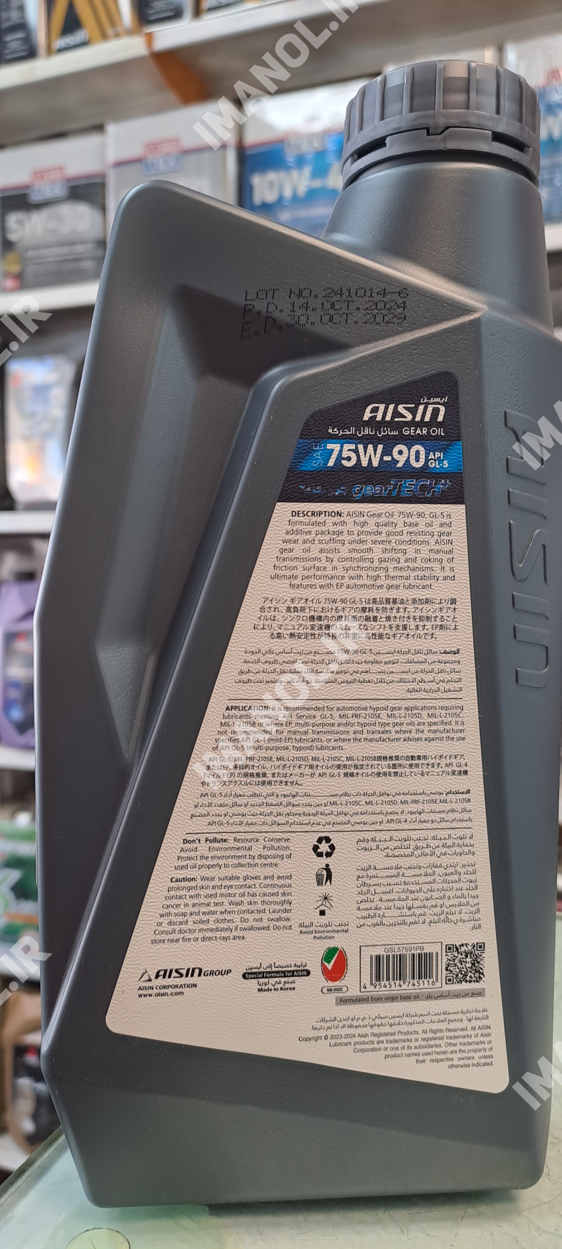 روغن گیربکس ایسین ۷۵w۹۰ یک لیتری GL5