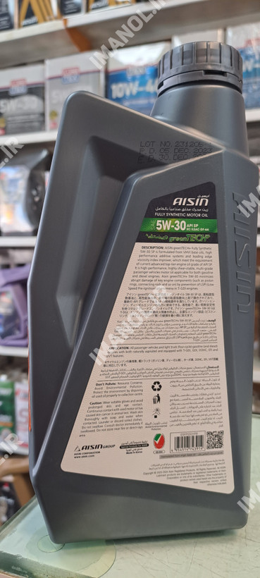 روغن موتور آیسین 5w30 تمام سینتتیک با درجه گرانروی 5w30 یکی از با کیفیت ترین روغن موتورهای شرکت آیسین جهت استفاده در خودروهای بنزینی و در مدل های سال 2010 به بالا میباشد. افزودنی های این روغن موتور توسط شرکت Aisin در کشور کره تولید و با بالاترین کیفیت ساخته شده است. برای تولید این روغن موتور از روغن پایه با کیفیت 3 و 4 استفاده شده است که قدرت پاک کنندگی بسیار بالا و تحمل حرارت باورنکردنی دارد.
