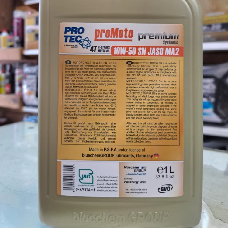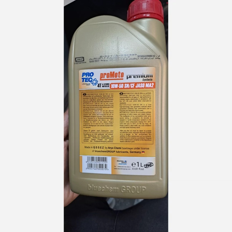 نقد و بررسی روغن موتور سیکلت پروتک PROTEC 10W 50 SN مناسب بنلی و بلنتا و هوندا و کاوازاکی و… موتور سیکلت مانند هر وسیله دیگری نیاز به مراقبت و نگه داری صحیح دارد تا با اطمینان از سلامت آن، رانندگی ایمن و مطمئنی داشته باشیم. یکی از مهم ترین نکات در نگه داری از موتور سیکلت توجه به روغن موتور آن است که نقش مهمی در افزایش عمر موتورسیکلت و انجین آن دارد. یکی از انتخابهای معتبر در بازار روغنها، روغن یک لیتری پروتک PROTEC 10W50SN است. روغن موتور سیکلت پروتک PROTEC 10W 50 SN یک روان کننده با تکنولوژی تمام سنتتیک فعال است. روغن موتور پروتک دارای کارایی بالا است و با رعایت استانداردهای بین المللی API SN (بالاترین کیفیت) و JASO MA2 (استاندارد JASO MA2 کاراترین سطح اصطکاک برای تضمین درگیری کلاچ در حین سه حالت سواری را ارایه می دهد: استارت، شتاب (گاز دادن)، و سرعت ثابت.) توانسته است به یک انتخاب ایده آل برای موتور سیکلت های با دور موتور بالا تبدیل شود. این روغن تمام اجزای موتور را به طور بهینه تمیز نگه می دارد و حتی آلودگی های ناشی از روغن های بی کیفیت قبلی را نیز و تضمین می کند که کارکرد موتور و تعویض دنده روان و نرم باشد. روغن یک لیتری پروتک 10W50 SN تمام سنتتیک، با ترکیبی هوشمندانه از روغن پایه و افزودنیهای با کیفیت، توانسته استانداردهای عملکرد و کیفیت را برآورده کند. این روغن موتور با درجه ویسکوزیته 10W50 و استاندارد SN برای استفاده در موتورسیکلتهای بنزینی سبک و سنگین طراحی شده است. یکی از مزایای برجسته این محصول، توانایی حفظ پایداری دمایی در دمایهای مختلف است. این روغن قدرت تطبیق با کاهش دما و افزایش آن را داراست و در نتیجه، عملکرد موتور در هر شرایط آب و هوایی حفظ میشود. همچنین، مزیت دیگر روغن یک لیتری پروتک 10W-50SN، توانایی تشکیل لایهٔ محافظ در برابر سایش و فرسایش است. این روغن باعث کاهش سایش اجزای مختلف موتور، افزایش عمر طولانیتر قطعات و حفظ عملکرد بهتر موتور میشود. این روغن مزایای بیشتری نیز دارد؛ از جمله موارد قابل ذکر میتوان به بهینهسازی مصرف سوخت، مقاومت در برابر اکسیداسیون و پایداری شیمیایی اشاره کرد. همچنین، با توجه به ترکیبی مناسب آن، روغن پروتک 10W50SN قابل استفاده برای موتورهایی با مصرف سوخت پایین تا بالا و موتورهایی که با شرایط آب و هوایی متنوع مواجه هستند، میباشد. با استفاده از روغن یک لیتری پروتک 10W50SN، شما میتوانید از عملکرد بهتر و دوام بیشتر موتور سیکلت خود لذت ببرید. این روغن موتور، کیفیت بالا و استانداردهای جهانی را با قیمت مناسبی به شما ارائه میدهد. پس برای حفظ و بهبود عملکرد موتور، روغن موتورسیکلت پروتک 10W50SN را انتخاب کنید و آرامش را تجربه کنید. روغن پروتک 10W-50 SN برای برتری یافتن نسبت به رقبای خود، تحت آزمایش های سخت قرار گرفته است و نتایج درخشانی به دست آورده است. ویسکوزیته این روغن موتور با کیفیت برای کنترل تغییرات دما در اجزای فلزی موتور از -25 درجه سانتیگراد (راه اندازی سرد) تا 330 درجه سانتیگراد (در حلقه های بالایی) سازگار است. این محصول برای هر نوع استفاده ای از جمله ترافیک شهری، شرایط روستایی و سفرهای بزرگراهی با سرعت بالا مناسب است و سلامت موتور شما را تضمین می کند. روغن موتور پروتک دارای یک روان کننده نسل جدید با فن آوری بالا است که عملکرد بسیار بالا را در مدت زمان طولانی تضمین می کند و قدرت موتور را بهبود می بخشد. برخی از نقاط تمایز روغن پروتک 10w50 SN: تحمل حرارتی بالا کاهش صدای موتور کاهش مصرف سوخت رسوب زدایی و پاک کنندگی بالا جلوگیری از سایش قطعات داخلی روان کاری مطلوب متناسب با فصل دارای گواهینامه JASO MA2 ژاپن روغن موتور سیکلت پروتک PROTEC 10W 50 SN ساخت bluechem آلمان است که در پروتک ایران که تحت لیسانس آلمان می باشد بسته بندی شده است. این روغن موتور برای موتورسیکلت ها با دور موتور بالا از جمله انواع بنلی و بلنتا و سوزوکی و کاوازاکی و هوندا و هیوسانگ و ان اس و آر اس و گلکسی و یاماها و سی بی 1000 و… مناسب است و ما آن را توصیه می کنی