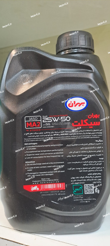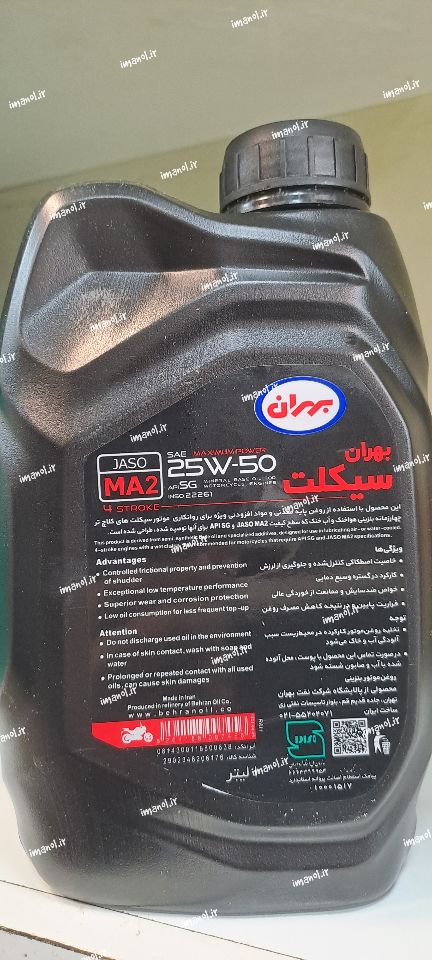 بهران سیکلت MA2 25W-50، با استفاده از روغن پايه معدنی و مواد افزودنی ويژه مطابق با استانداردهای API SG/CD و JASO MA2 , برای استفاده در سیستمهای روانکاری موتورسیکلتهای چهارزمانه هوا- خنک یا آب-خنک کلاچتر طراحی شده است.