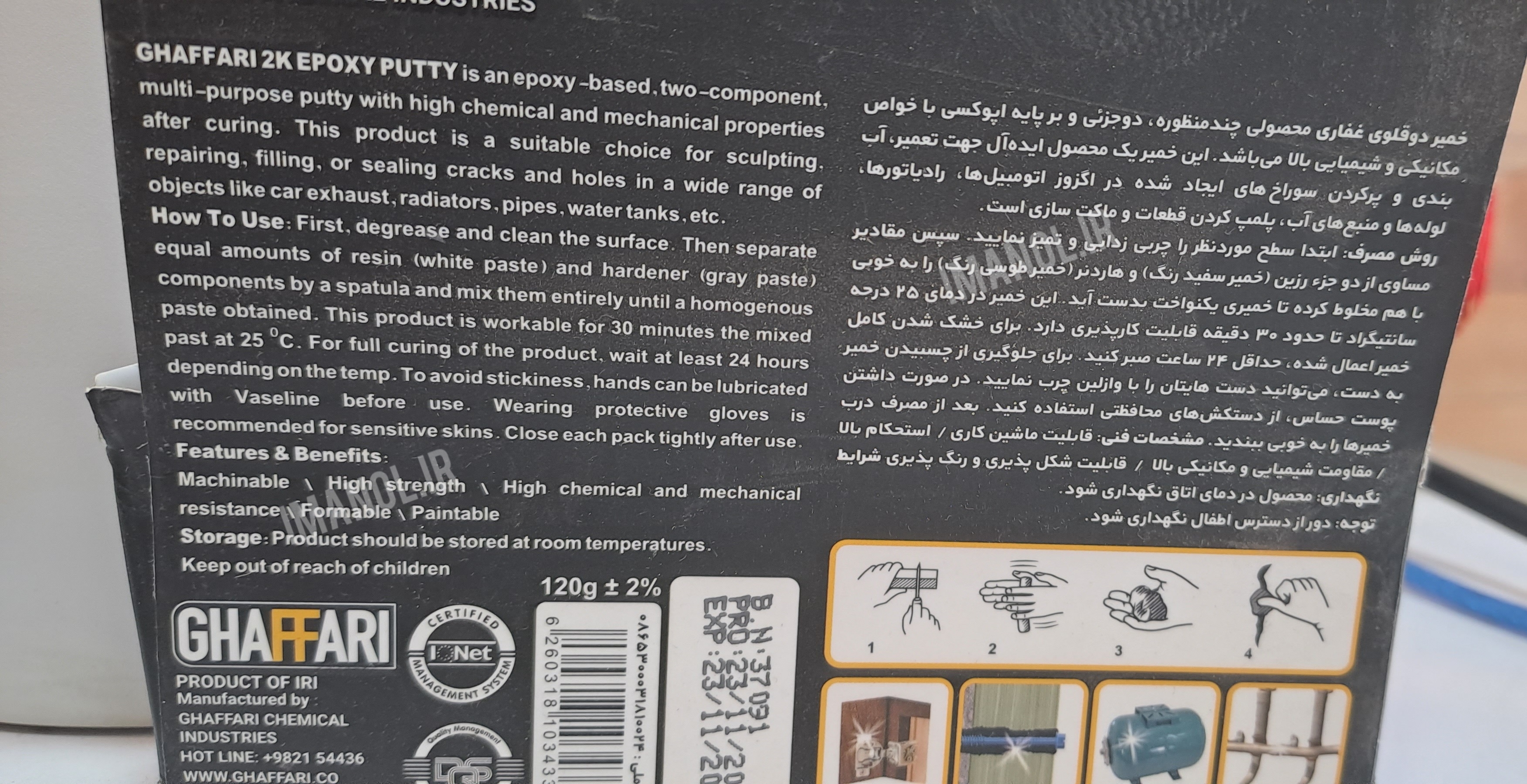 چسب خمیر دو قلو غفاری دیر خشک میل پوکس ۱۲۰ گرمی