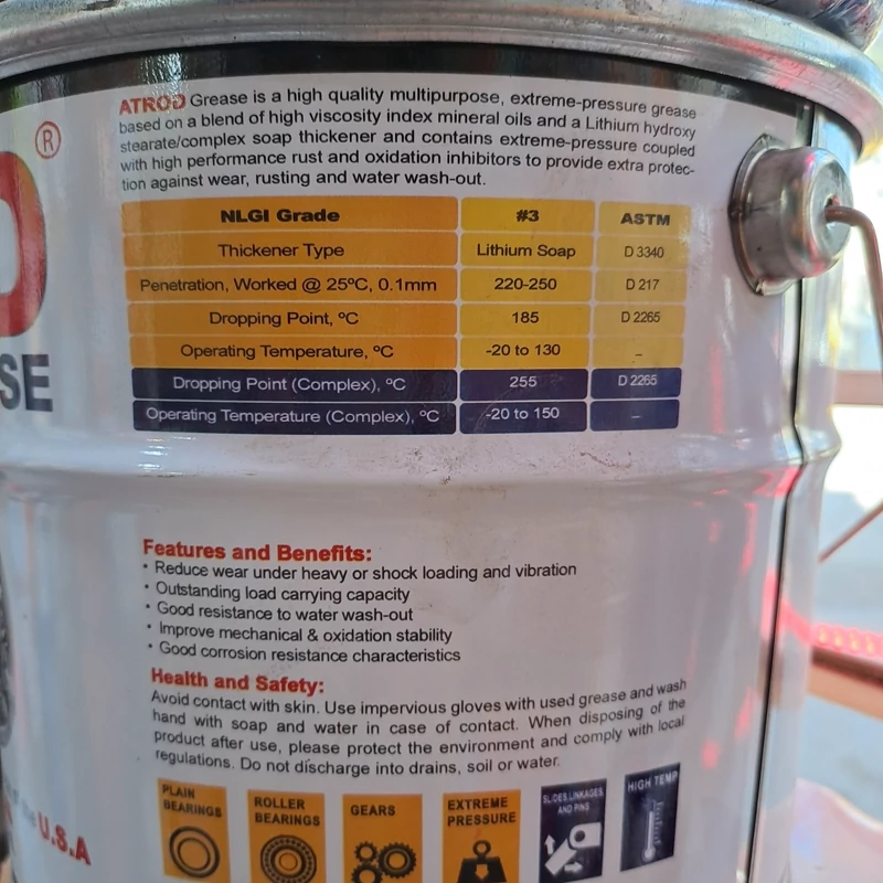 گریس آترود تشکیل شده از روغن پایه مرغوب با شاخص گرانروی بالا، تلغیظ کننده صابون لیتیوم و مواد مخصوص جهت افزایش مقاومت در برابر فشار و بارهای مکانیکی وارده است. گریس های لیتیوم EP آترود کارایی در دمای بالا و پایداری مکانیکی عالی در محیط های مرطوب را به طور همزمان دارند. گریس های نسوز معمولاً در دما ها و شرایط مختلف کاربرد دارند، اما دمای تحمل آنها به عوامل مختلفی ارتباط دارد از جمله نوع گریس، ترکیبات، و شرایط کاربرد. به عنوان مثال: گریس پایه لیتیوم: بسیاری از این نوع گریس ها در دماهای میانه تا حدود 150-200 درجه سانتیگراد قابل استفاده هستند. گریس های پایه معدنی (لیتیوم) به دلیل محدودیت های حرارتی در برخی موارد ممکن است برای دماهای بالاتر نیاز به گریس های پایه سنتزی یا مخلوطی داشته باشند. گریس های پایه سنتزی: گریس های پایه سنتزی معمولاً دماهای بالاتری را تحمل می کنند. بسیاری از آنها می توانند در دماهای بالاتر از 200 درجه سانتیگراد عمل کنند. گریس های پایه سنتزی عمدتاً از پلی آلفینها، پلی استرها یا پلی اترها ساخته می شوند. کاربرد و مزایای گریس آترود: انواع یاتاقان ها تحت دماهای بالا و فشار های زیاد الکترو موتور ها، شفت ها و اتصالات تحت فشار بالا پمپ ها و شیر های کشویی ابزار مزایا: مقاومت در برابر آب و فشارهای که در یک زمان می باشد نگهداری قطعات در برابر پوسیدگی پایداری برشی و ارتعاشی مناسب پایداری عالی در مقابل اکسایش قابلیت فشار پذیری عالی مقاومت عالی در برابر آب