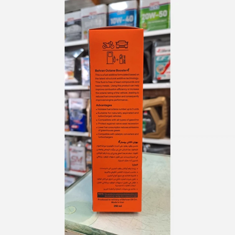 بهران اکتان 5 پلاس، بهران اکتان 5 پلاس يك مكمل سوخت است كه بر پايه جديدترين فنآوری ساختاری مواد افزودنی فرموله شده است. اين سيال، عاری از تركيبات سرب و فلزات سنگین است. استفاده از اين محصول میتواند به افزایش بهسوزی یا اکتان افزایی خودرو کمک كند و موجب كاهش مصرف سوخت و در نتيجه بهبود عملكرد موتور خودرو شود. مزیتها: افزايش عد اكتان سوخت بنزين حداكثر تا 5 واحد جلوگیری از بروز پدیده ناک در موتور (Engine Knocking) بهبود کارکرد موتور و افزایش طول عمر قطعات آن مؤثر بر كاهش مصرف سوخت و در نتيجه کاهش انتشار گازهای گلخانهای سازگاری با مبدلهای كاتاليتيكی و سيستمهای توربو شارژ