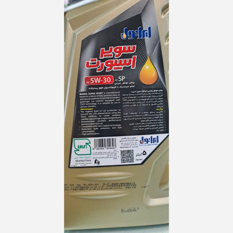 روغن موتور ایرانول سوپر اسپرت 5w30 پنج لیتری SP